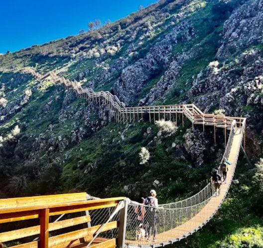 Deze wandeling begint in het dorpshart van Alferce, een klein, charmant bergdorpje in de groene Serra de Monchique. We wandelen door valleien met ruisende beekjes, over oude landbouwgrond en langs bossen van kurkeiken en eiken. Een bijzonder hoogtepunt is het Passadiço do Barranco do Demo, een houten vlonderpad met een hangbrug dat een spectaculair uitzicht biedt over het omliggende landschap. De brug is ongeveer 50 meter lang en hangt circa 20 tot 50 meter boven de bodem van de kloof. De brug is zeer stabiel, wiebelt nauwelijks en is voorzien is van een stevige, dichte houten vloer waardoor je niet direct de diepte in kijkt. Ook voor wandelaars met lichte hoogtevrees is de oversteek goed te doen dankzij de solide constructie.