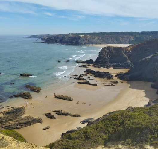 We starten bij Vila do Bispo en wandelen richting Cordoama. Al snel laten we het dorp achter ons en trekken we het uitgestrekte bos in van het Parque Natural do Sudoeste Alentejano e Costa Vicentina. We wandelen over rustige paden tussen dennen en inheemse begroeiing, met af en toe open plekken die uitzicht bieden op het ruige landschap. Praia da Cordoama is een spectaculair, uitgestrekt en ruig strand. Bekend om zijn hoge zwarte kliffen en krachtige Atlantische golven.