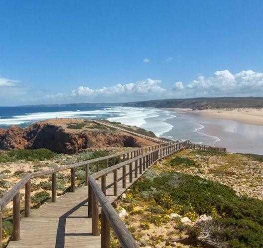 De rondwandeling bij Pontal da Carrapateira (een spectaculaire, rotsachtige landtong) is een prachtige route door het ‘Parque Natural do Sudoeste Alentejano e Costa Vicentina’, met weidse uitzichten over de Atlantische Oceaan en indrukwekkende kliffen. Onderweg volgen we delen van de Trilho dos Pescadores (de bekende Fishermen’s Trail) en kijken we uit over de brede zandstranden van Praia da Bordeira en Praia do Amado. We genieten van de blauwe zee en het ruige kustlandschap. De route combineert afwisselend ‘klifpaden’ met duinen.